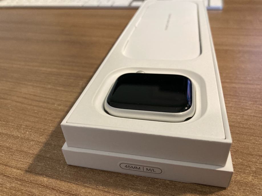 Predivni Apple Watch od 45mm, silver, GPS model A2980. Tijelo sata je savršeno, 10/10 bio je u kućištu koje dajem gratis. Baterija je na 88%. Dolazi u kutiji s punjačem i gumenim remenom. Dajem gratis dodatne Apple Watch Sport Loop remene.