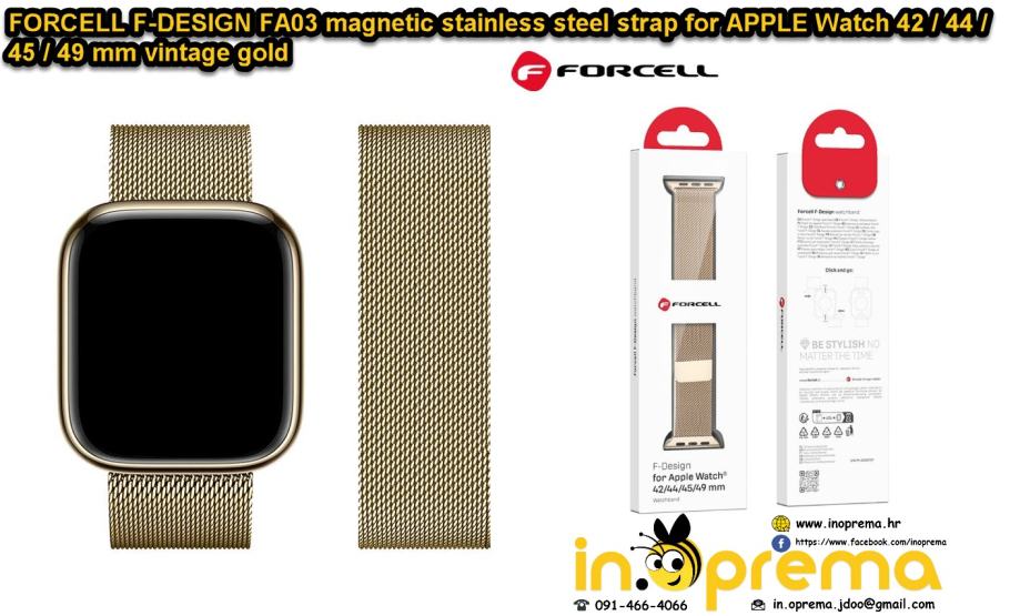 CIJENA - FORCELL F-DESIGN FA03 magnetic stainless steel strap for APPLE Watch 42 / 44 / 45 / 49 mm vintage gold - 19.90 EUR