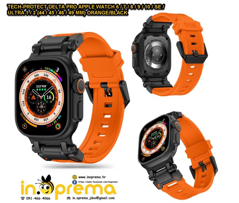 CIJENA - TECH-PROTECT DELTA PRO APPLE WATCH 6 / 7 / 8 / 9 / 10 / SE / ULTRA 1 / 2 (44 / 45 / 46 / 49 MM) ORANGE/BLACK - 27.80 EUR