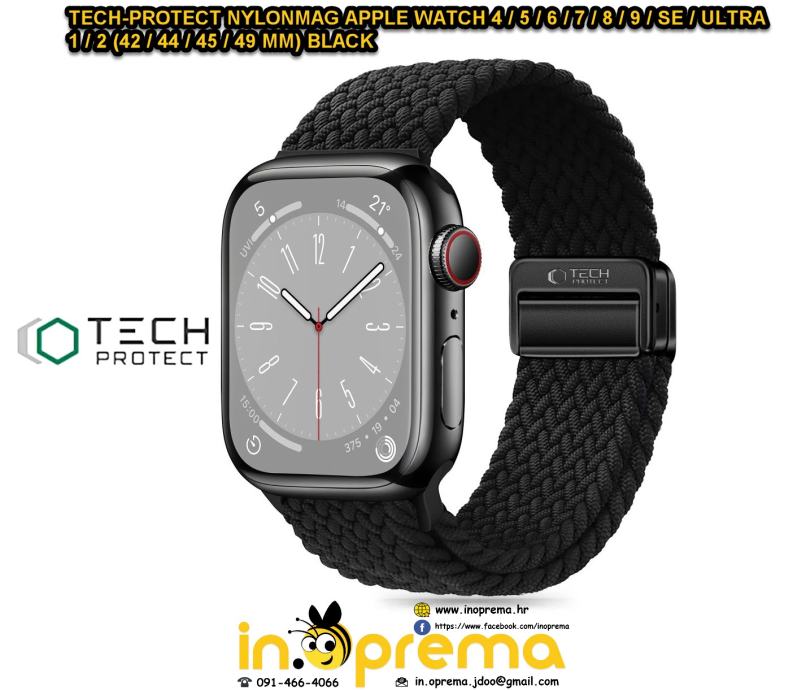 CIJENA - TECH-PROTECT NYLONMAG APPLE WATCH 4 / 5 / 6 / 7 / 8 / 9 / SE / ULTRA 1 / 2 (42 / 44 / 45 / 49 MM) BLACK - 15 EUR