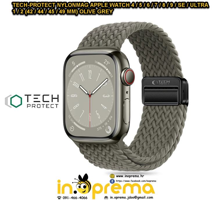CIJENA - TECH-PROTECT NYLONMAG APPLE WATCH 4 / 5 / 6 / 7 / 8 / 9 / SE / ULTRA 1 / 2 (42 / 44 / 45 / 49 MM) OLIVE GREY - 15 EUR