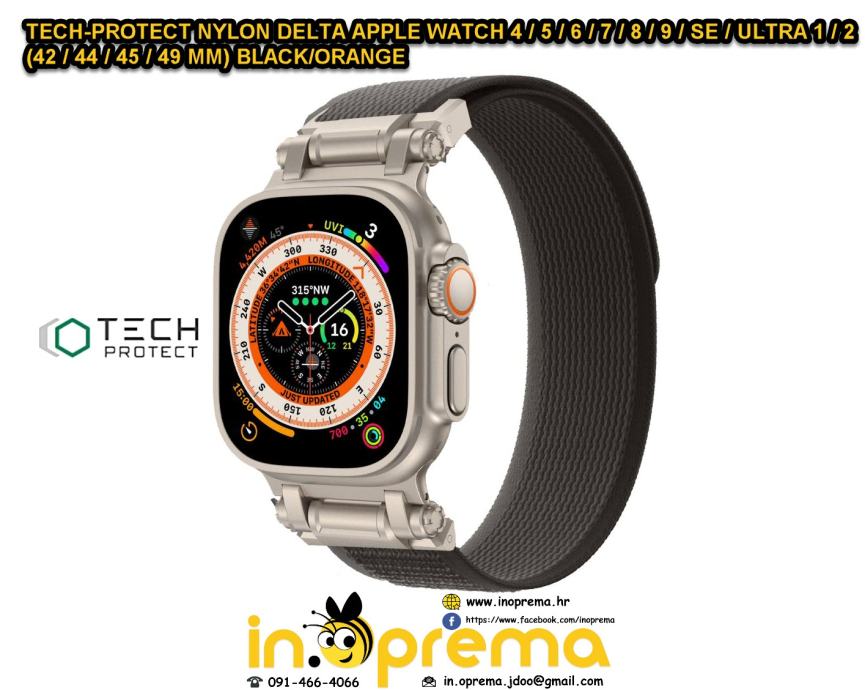 CIJENA - TECH-PROTECT NYLON DELTA APPLE WATCH 4 / 5 / 6 / 7 / 8 / 9 / SE / ULTRA 1 / 2 (42 / 44 / 45 / 49 MM) BLACK/ORANGE - 18.50 EUR