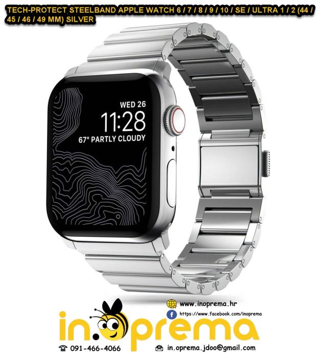 CIJENA - TECH-PROTECT STEELBAND APPLE WATCH 6 / 7 / 8 / 9 / 10 / SE / ULTRA 1 / 2 (44 / 45 / 46 / 49 MM) SILVER - 39,80 EUR