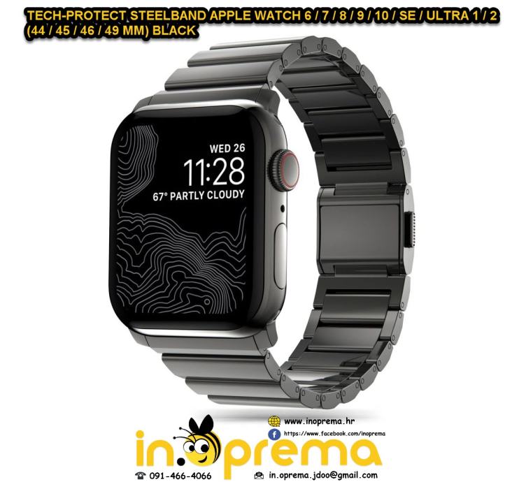 CIJENA - TECH-PROTECT STEELBAND APPLE WATCH 6 / 7 / 8 / 9 / 10 / SE / ULTRA 1 / 2 (44 / 45 / 46 / 49 MM) BLACK - 39,80 EUR