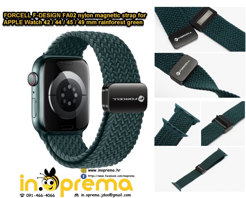 CIJENA - FORCELL F-DESIGN FA02 nylon magnetic strap for APPLE Watch 42 / 44 / 45 / 49 mm rainforest green - 19.90 EUR