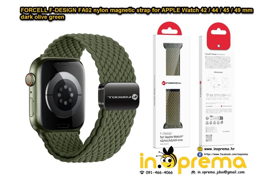 CIJENA -FORCELL F-DESIGN FA02 nylon magnetic strap for APPLE Watch 42 / 44 / 45 / 49 mm dark olive green - 19.90 EUR