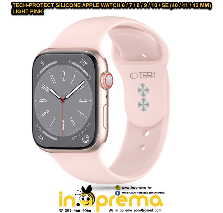CIJENA - TECH-PROTECT SILICONE APPLE WATCH 6 / 7 / 8 / 9 / 10 / SE (40 / 41 / 42 MM) LIGHT PINK - 11.45 EUR