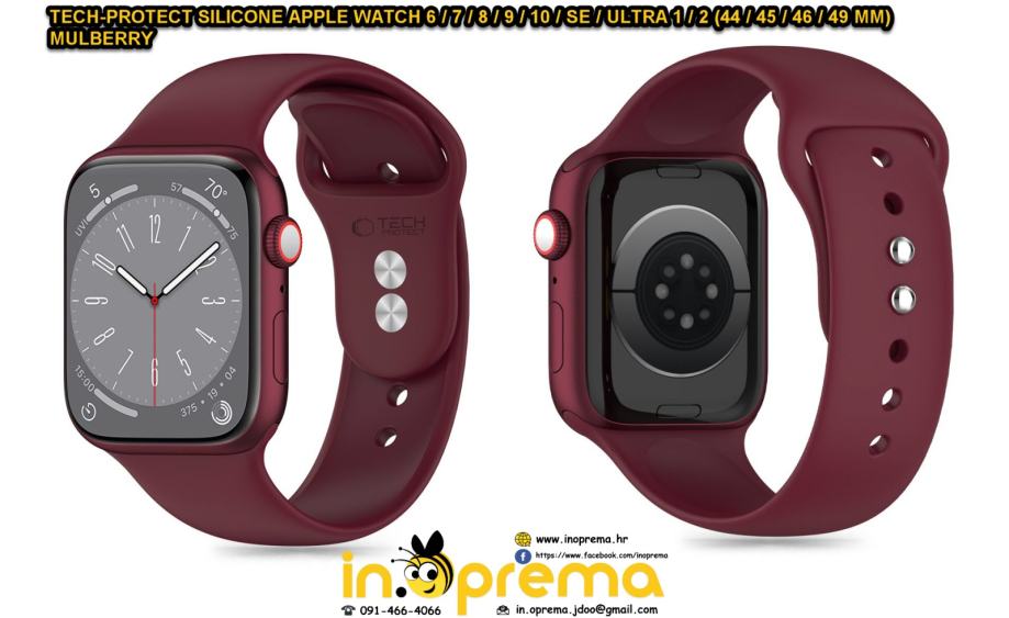 CIJENA - TECH-PROTECT SILICONE APPLE WATCH 6 / 7 / 8 / 9 / 10 / SE / ULTRA 1 / 2 (44 / 45 / 46 / 49 MM) MULBERRY - 11.50 EUR