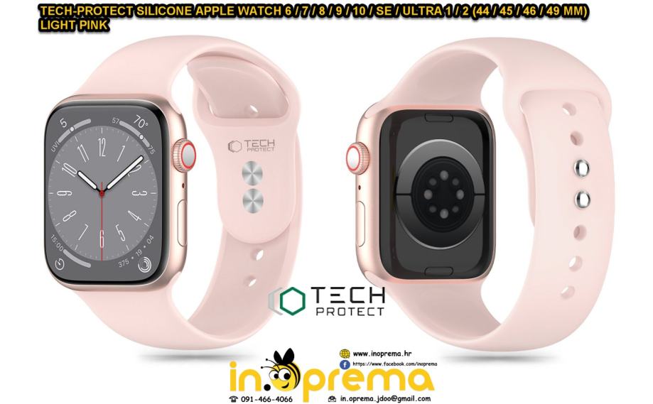 CIJENA - TECH-PROTECT SILICONE APPLE WATCH 6 / 7 / 8 / 9 / 10 / SE / ULTRA 1 / 2 (44 / 45 / 46 / 49 MM) LIGHT PINK - 11.50 EUR