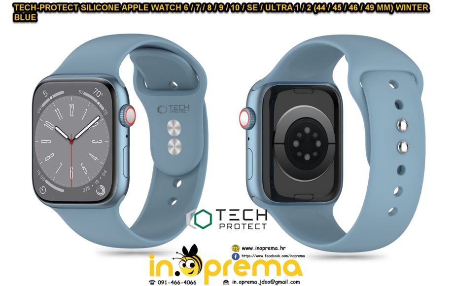 CIJENA - TECH-PROTECT SILICONE APPLE WATCH 6 / 7 / 8 / 9 / 10 / SE / ULTRA 1 / 2 (44 / 45 / 46 / 49 MM) WINTER BLUE - 11.50 EUR