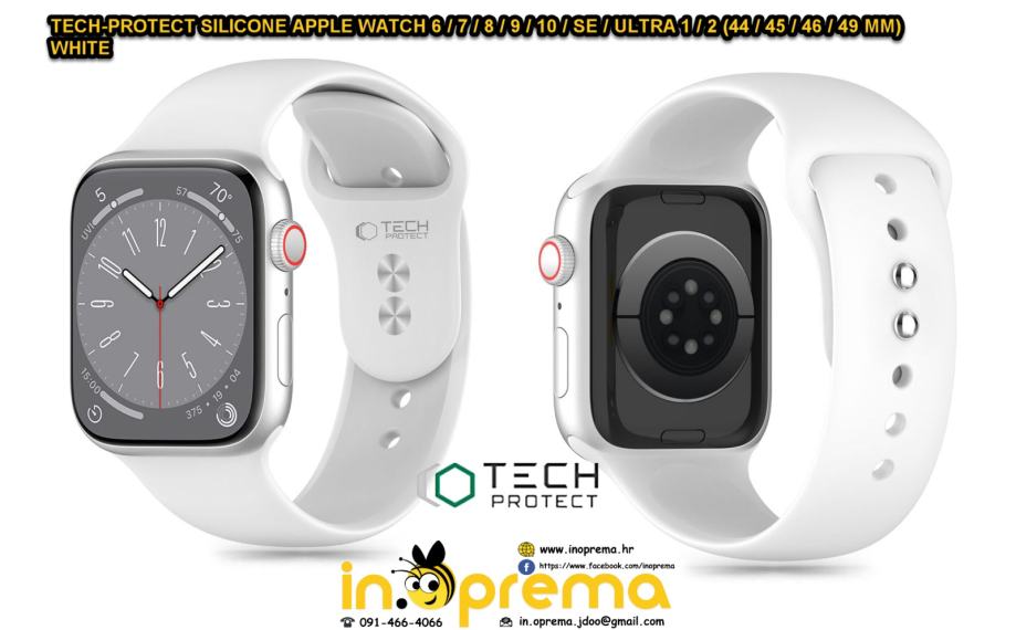 CIJENA - TECH-PROTECT SILICONE APPLE WATCH 6 / 7 / 8 / 9 / 10 / SE / ULTRA 1 / 2 (44 / 45 / 46 / 49 MM) WHITE - 11.50 EUR
