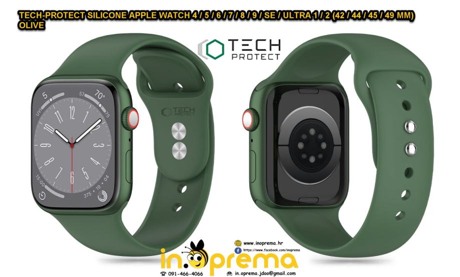 CIJENA - TECH-PROTECT SILICONE APPLE WATCH 4 / 5 / 6 / 7 / 8 / 9 / SE / ULTRA 1 / 2 (42 / 44 / 45 / 49 MM) OLIVE - 11.50 EUR