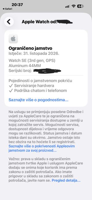 - nošen par puta, nema tragova korištenja, kao novi je. zdravlje baterije 100% (vidi sliku)