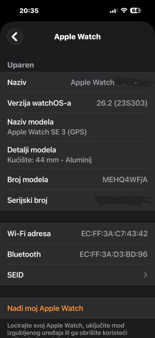 Apple Watch SE 3, 44mm crni, kao novi, garancija - OSIJEK