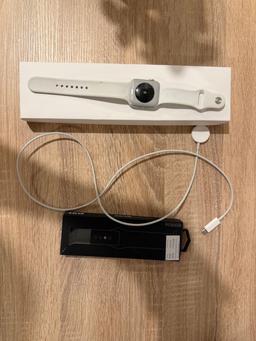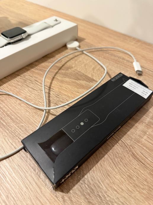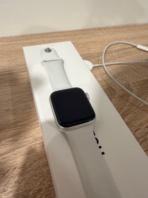 Prodajem Apple Watch SE 2. generacije u srebrnoj boji s bijelim sportskim remenom. Uz sat dolazi originalna kutija, magnetski punjač te dodatni crni remen.
