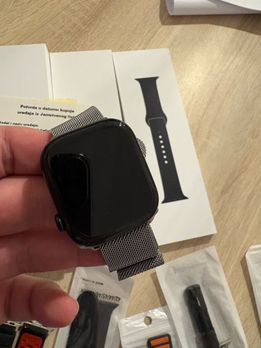 Prodajem Apple Watch Series 10 Cellular u veličini 46mm. Sat dolazi s originalnom opremom i dodatnim remencima. Cellular funkcionalnost omogućava pozive i poruke bez mobitela u blizini. Kućište je crne boje, a uzsat ide milanez narukvica u sivoj boji te dodatne narukvice sa slike.Sve je uredno pohranjeno u originalnoj kutiji s dokumentacijom.