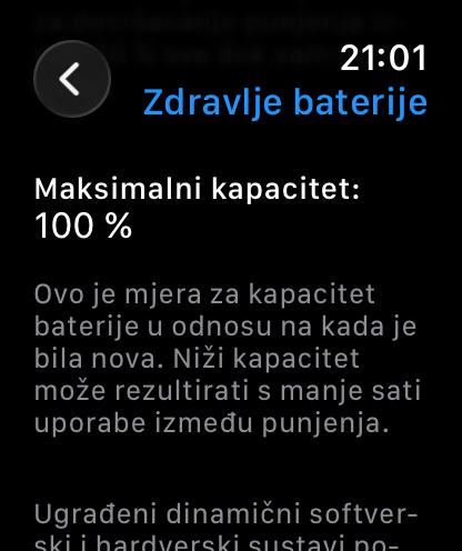 Zdravlje baterije još uvijek na 100%.