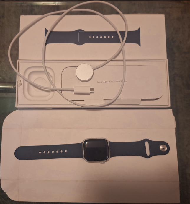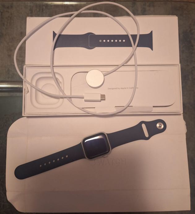 Prodajem vrlo povoljno novi Apple Watch Series 9 41 mm, aluminijsko kućište, sa sport band remenom.