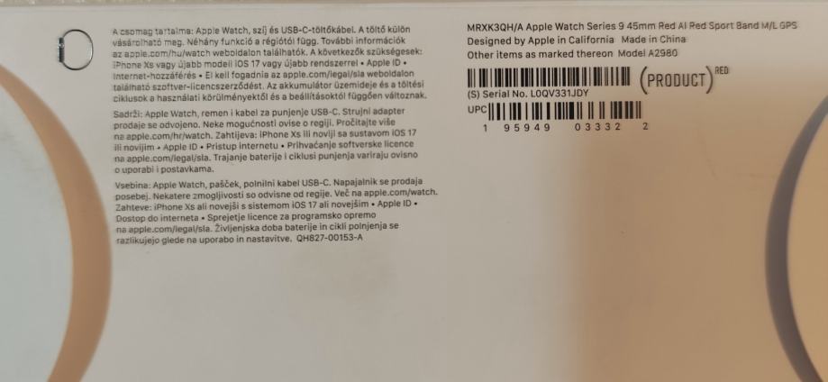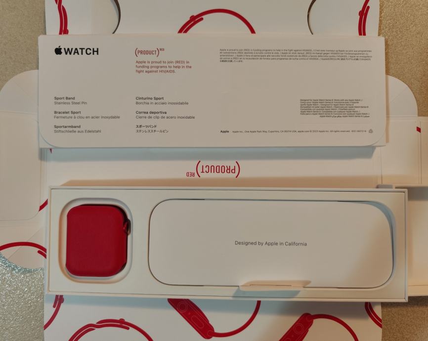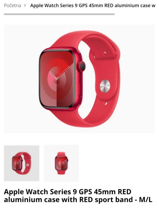 Apple watch series 9 gps 45 mm aluminium case with red sport band M/L.