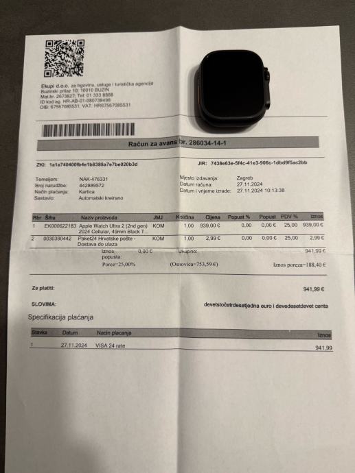 Sat je kupljen 11/2024, nošen je jako malo zbog drugih satova koje posjedujem.