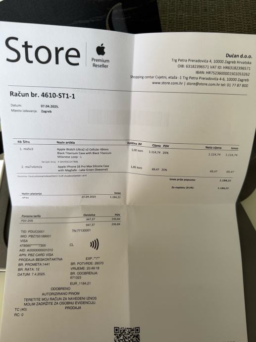 Kupljen 07.04.2025. U apple storu, sa računom i garancijom.
