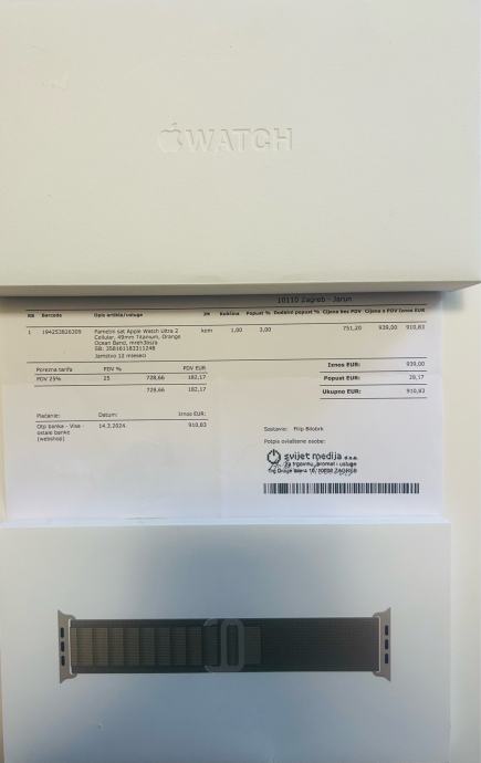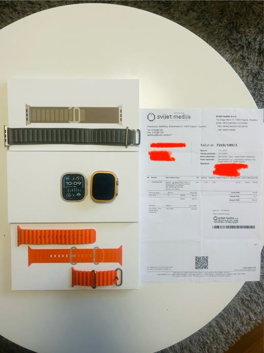 Prodajem Apple Watch Ultra 2, kupljen u ožujku 2024. Stanje je odlično. Uvijek nošen s maskom, nema ogrebotina na ekranu. Baterija je 99%.