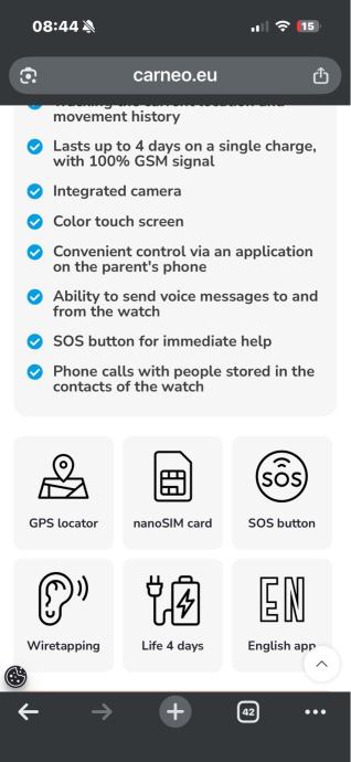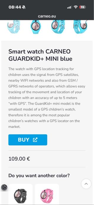 Prodajem Carneo GUARDKID+ mini pametni sat za djecu u svijetloplavoj boji. Sat ima ugrađenu kameru, zaslon osjetljiv na dodir i slot za SIM karticu što omogućava pozive i praćenje lokacije djeteta. Izrađen je od kvalitetne plastike s prilagodljivom narukvicom pogodnom za dječje ručne zglobove. Uređaj je potpuno nov i funkcionalan, u ispravnom stanju.
