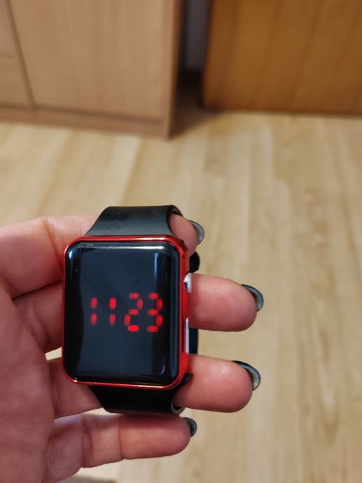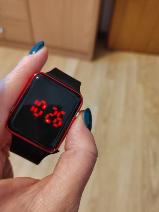 Prodajem dječji digitalni sat s crnom silikonskom narukvicom i crvenim plastičnim okvirom. Sat ima pravokutni oblik s digitalnim LED zaslonom koji prikazuje vrijeme i datum u crvenim brojkama. Narukvica se može podesiti prema veličini ručnog zgloba, a sat je jednostavan za korištenje. Pogodan za djecu.
