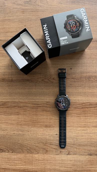 Prodajem fēnix® 8 – 47 mm, AMOLED Sapphire, Carbon Gray DLC Titanium with Black/Pebble Gray Silicone Band.