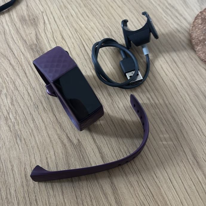Prodajem Fitbit Charge 4 pametnu narukvicu u tamno ljubičastoj boji. Narukvica prati svakodnevnu aktivnost, otkucaje srca, kalorije, spavanje i ima ugrađen GPS za praćenje ruta tijekom trčanja ili šetnje. Baterija traje do 7 dana, a uređaj je vodootporan. Dolazi s punjačem i dodatnom narukvicom.