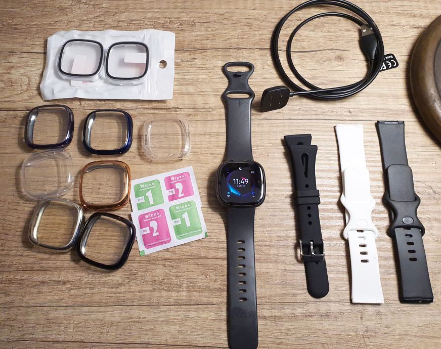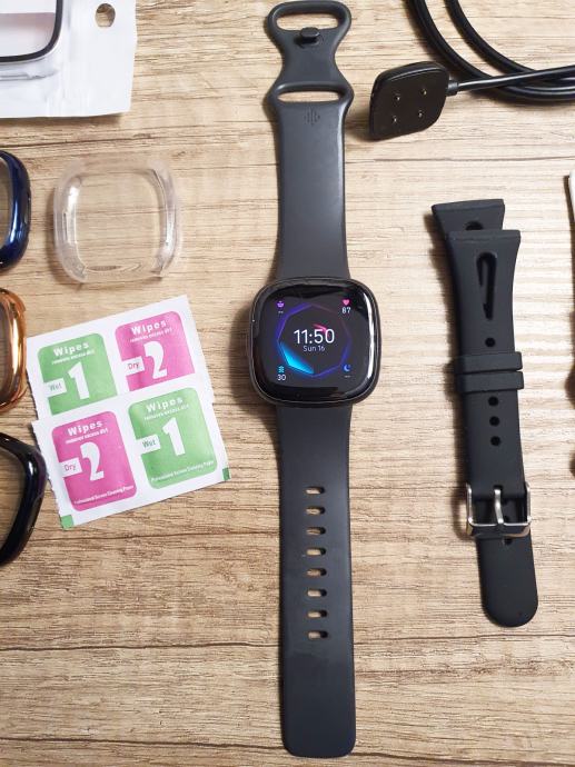 Na prodaju pametni sat Fitbit Sense 2 sa puno opreme - zastitne maskice, remeni, sa orginalnim punjacem