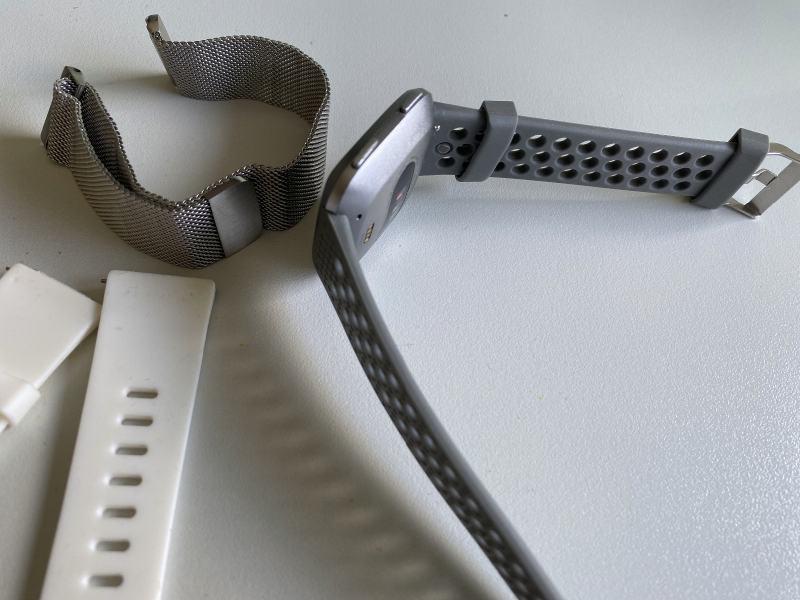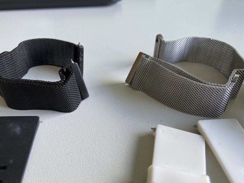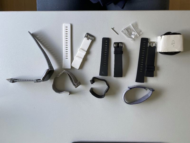 Uz sat dajem i nekoliko remena, također prikazano na slici. Neki remeni su sportski (silikonski), neki su elegantni (metalni "milanese loop" remeni sa zatvaranjem na magnet). Punjač, naravno, dolazi sa satom. Kutiju nemam.