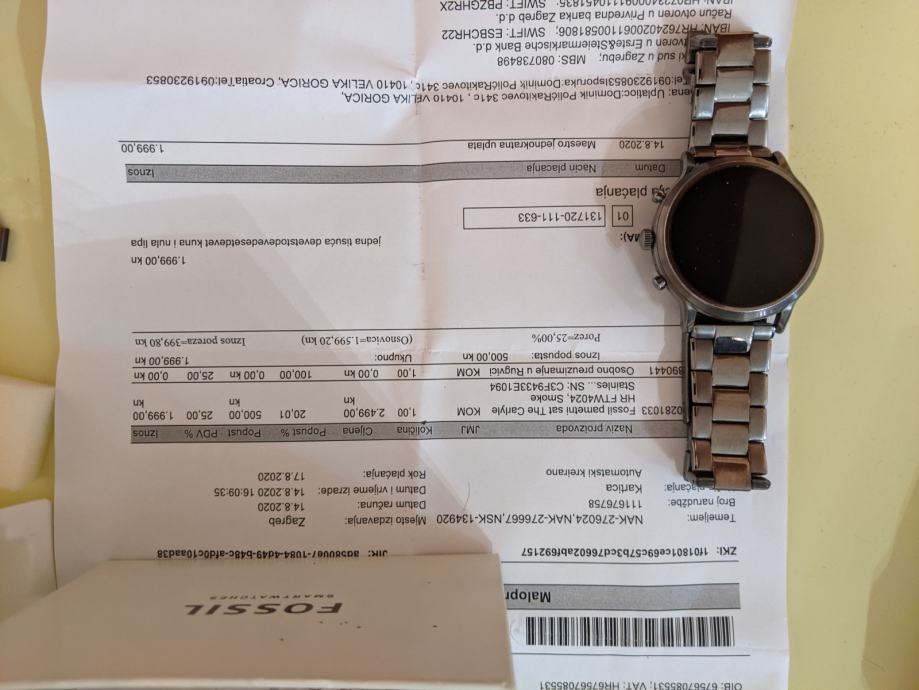 Prodajem rabljeni Fossil Gen 5 pametni sat, sa originalnom kutijom, punjacem i papirima, kao i jednim rezervnim zamjenskim punjacem (nije na slikama) i 3D isprintanim stalkom za punjenje. Stanje je 6/10, ima nekoliko sitnih ogrebotina po ekranu i malo napuknuce na samom cosku koji se vide pod dobrim osvjetljenjem, vidljivo je na slikama, ne utjece na funkcionalnost, napuknuto je samo vanjsko staklo. Ekran ima manji burn-in koji se može vidjeti kada se prikazuje nešto u svjetlijim bojama. Baterija ne traje kao nova ali meni je držala cijeli dan s normalnim korištenjem, uz korištenje Google Pay-a, always-on-display-a i WiFi na auto, tako da vjerujem da bez toga moze drzati i nesto duze. Remen je originalni metalni te dolaze 3 dodatne karike za produzivanje remena, a moguce ga je naravno i skratiti.