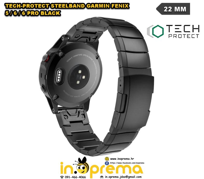 BOJA: CRNA TECH-PROTECT STEELBAND GARMIN FENIX 5/6/6 PRO BLACK SIRINA REMENA 22 MM
