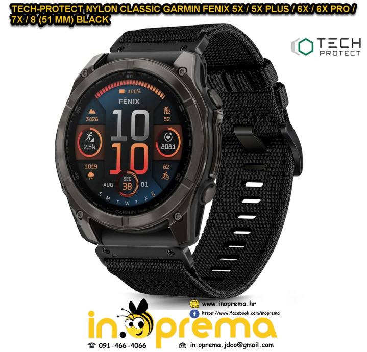 CIJENA - TECH-PROTECT NYLON CLASSIC GARMIN FENIX 5X / 5X PLUS / 6X / 6X PRO / 7X / 8 (51 MM) CRNA - 24.90 EUR
