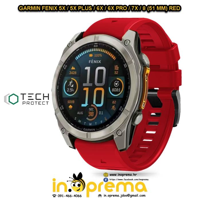CIJENA - TECH-PROTECT SILICONE LINE GARMIN FENIX 5X / 5X PLUS / 6X / 6X PRO / 7X / 8 (51 MM) RED - 18 EUR