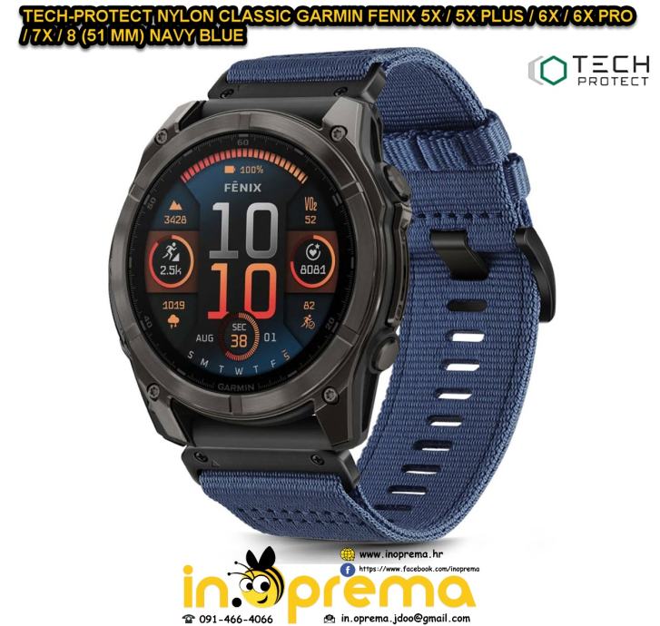 CIJENA - TECH-PROTECT NYLON CLASSIC GARMIN FENIX 5X / 5X PLUS / 6X / 6X PRO / 7X / 8 (51 MM) TAMNO PLAVA - 24.90 EUR