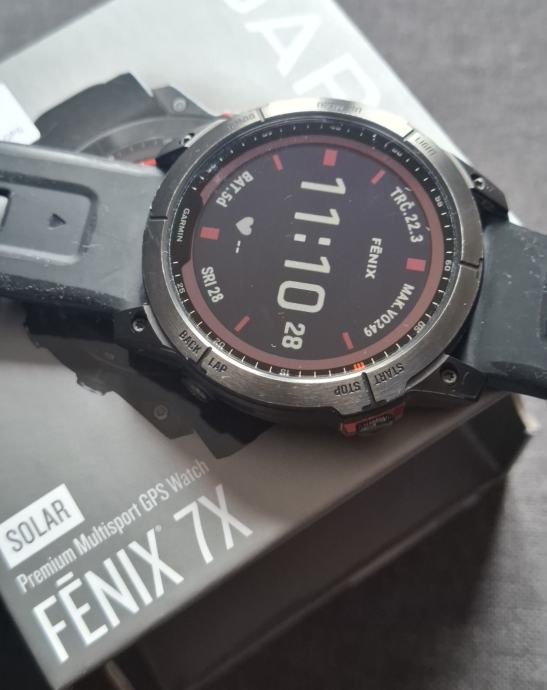 GARMIN Fenix 7X solar, 51 mm, stanje odlično, kupljen u Chipoteci 23.01.2025., garancija još godinu dana. Dolazi u originalnoj kutiji sa punjačem, računom i silikonskim remenom. Prodajem radi kupnje novog (amoled) sata. Bez zamijena molim.