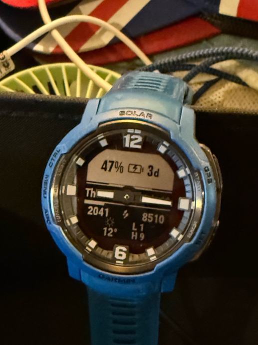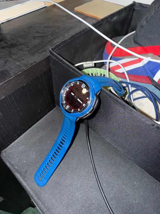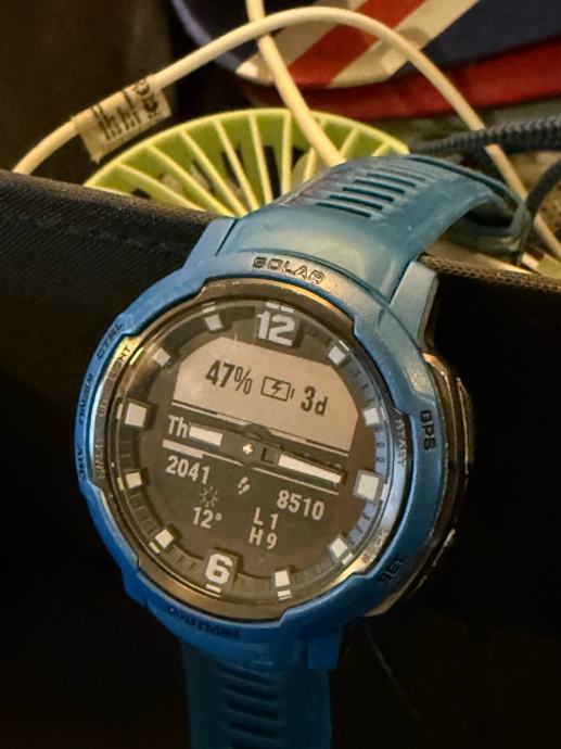 Garmin instinct crossover solar plave boje. Baterija 100% kapaciteta. Sat je bio poklon te je malo nošen, uvijek čuvan. Odličan pametni sat, vrlo funkcionalan i estetski zanimljiv. Puno funkcija kroz mobilnu aplikaciju. Ako vas zanimaju detalji molim vas Google-ajte. Sat je u super stanju posjeduje original kabel, kutiju. Mislim da je kupljen u “Svijet medija” dućanu. Cijena novog je 650€.