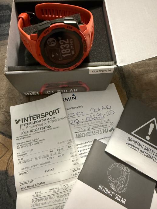 Sat je korišten nekoliko puta, uglavnom stajao jer je remen premali. Baterija odlična, original kutija, punjač, računi. Nije pod garancijom.