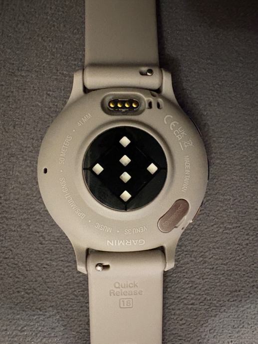 Prodajem Garmin Venu 3s pametni sat u soft gold boji s narukvicom u french gray boji. Radi se o manjem modelu od 41mm, s AMOLED zaslonom i ugrađenom podrškom za glazbu (Music). Sat ima Quick Release remen (18mm) koji se lako mijenja.