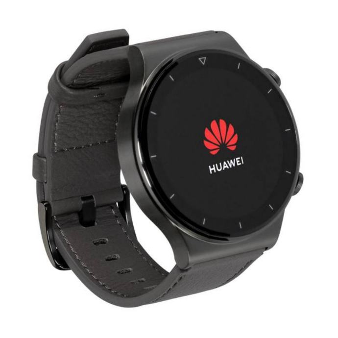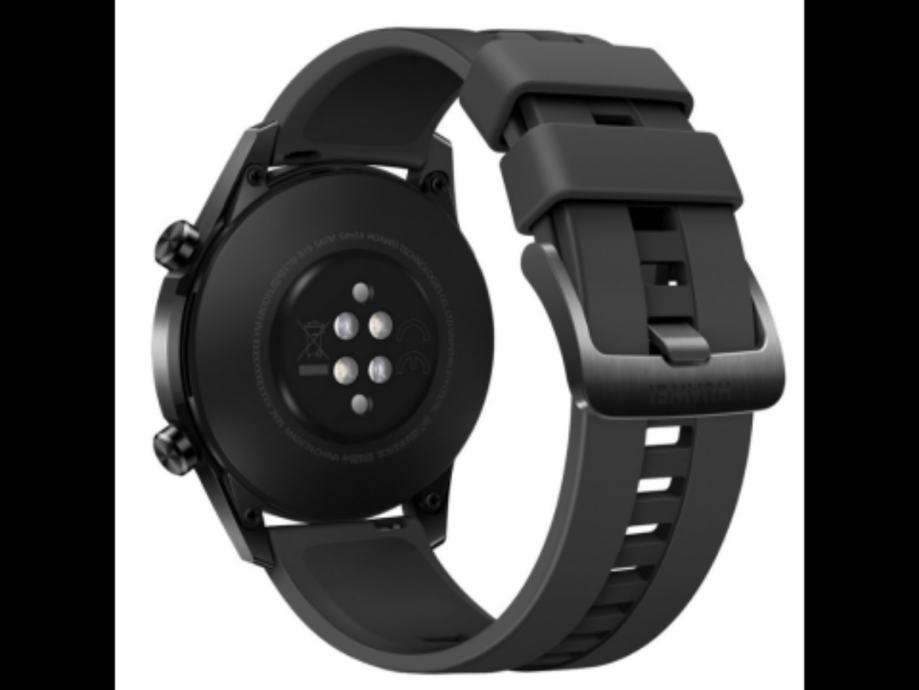 Huawei pametni sat GT 2 u crnoj boji s gumenom narukvicom. Elegantan i funkcionalan sat idealan za praćenje aktivnosti i povezivanje s pametnim telefonom.