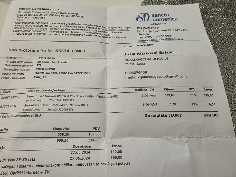 Profajem u super stanju huawei watch 4 pro space edition.račun uz mob i sat je jos u garanciji.kutija i sve kaj je došlo sa njim.CIJENA JE 300 FIXNA I BEZ ZAMJENA