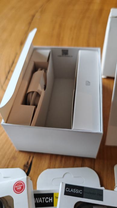 Uz uredjaj dolazi dodatne 4 silikonske magnetne narukvice, 5 maskica za kuciste u sivoj ctnoj i plavoj boji, zastitnim kaljenim staklima, originalnom kutijom, punjacem i pripadajucom dokumentacijom, racunom i garancijom.