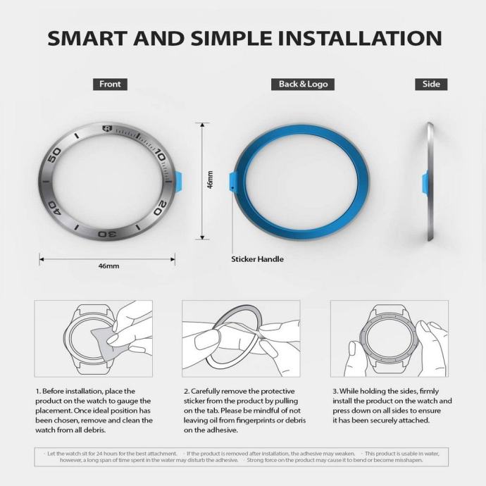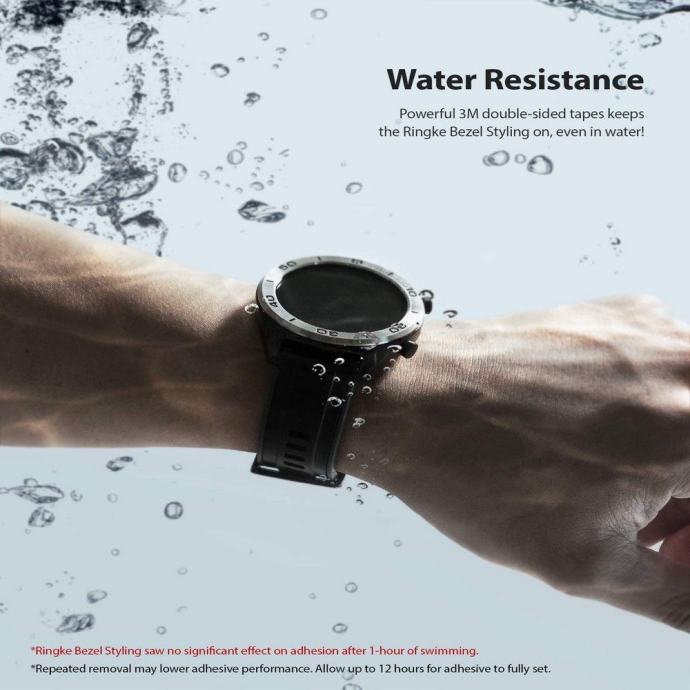 Prekrivač Ringke Bezel Styling pruža zaštitu od ogrebotina na našem uređaju. Prikladno debela, dvostrana traka unutar prekrivača djeluje kao međuspremnik, tako da ne morate brinuti da ćete oštetiti sat. Izuzetno lako se sastavljaju i rastavljaju.