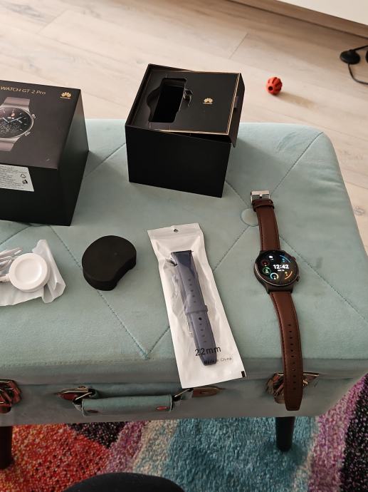 Prodajem malo nošen HUAWEI WATCH GT 2 PRO s elegantnim kožnim remenom smeđe boje. Pametni sat dolazi u originalnoj kutiji i s dodatnim remenom u plavoj boji. Uređaj je u odličnom stanju i potpuno funkcionalan, idealan za praćenje aktivnosti i obavijesti.