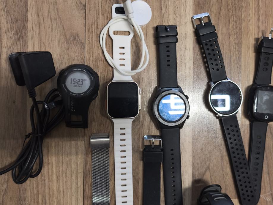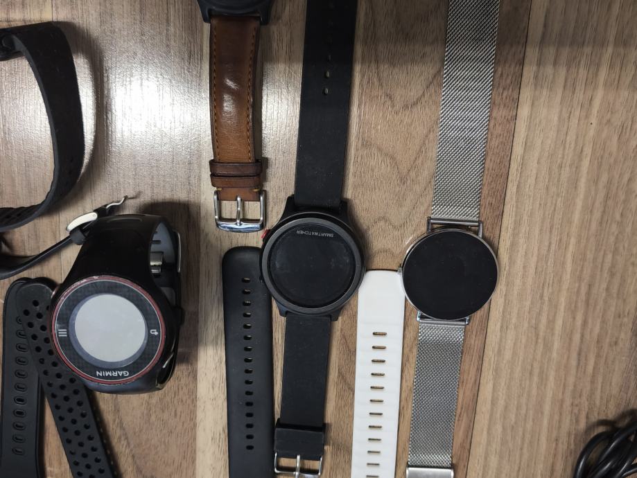 Jedan Garmin ispravan ima punjač nema narukvice(prvi red od gore-prvi sa lijeve strane) vjerovatno se nova ne može ni postaviti jer ja mislim ide komplet sa kučištem...