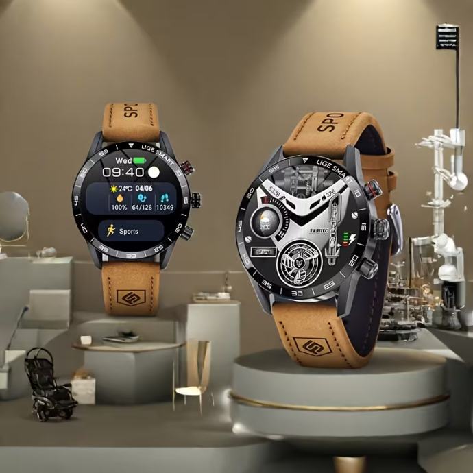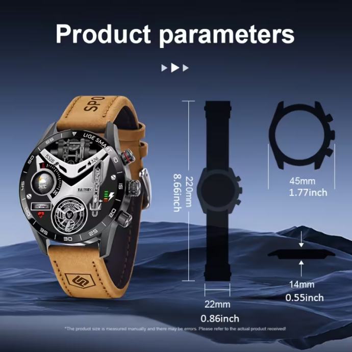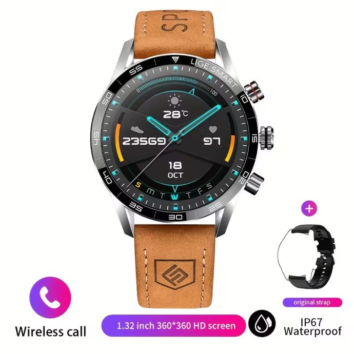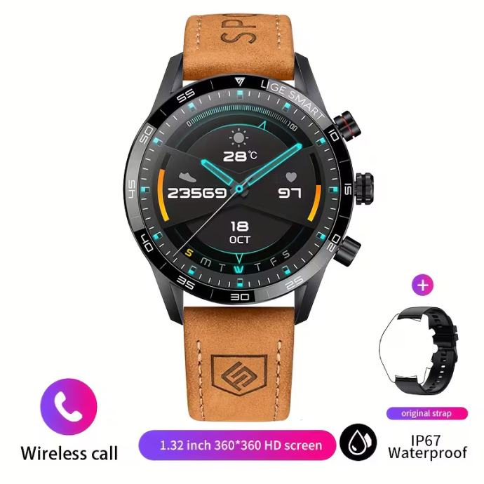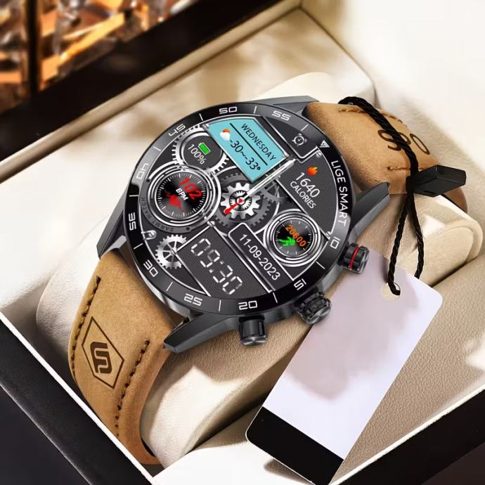 Muški pametni sat s više funkcija, bežičnim pozivima, daljinskim upravljanjem fotografijama, pametnim obavijestima, ocjenjivanjem i elegantnim remenom od PU kože - savršen poklon.