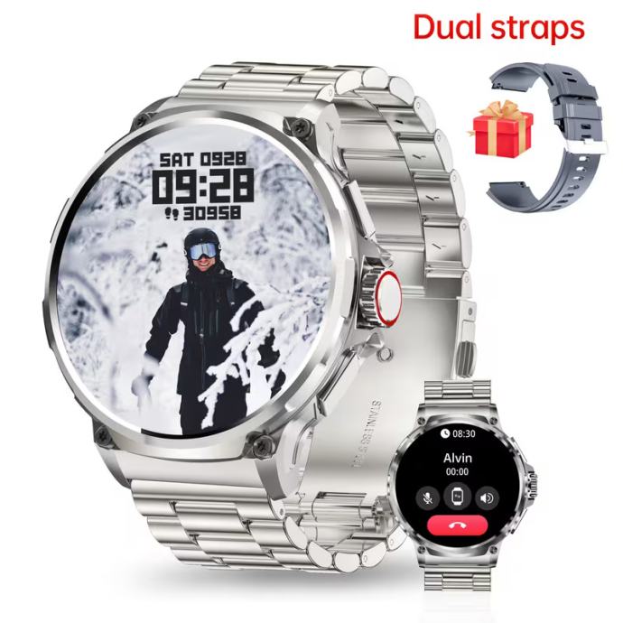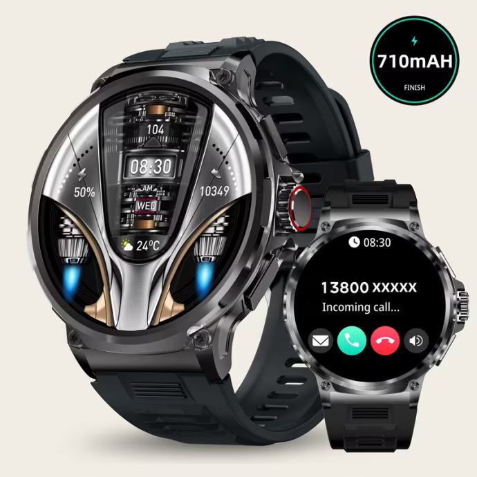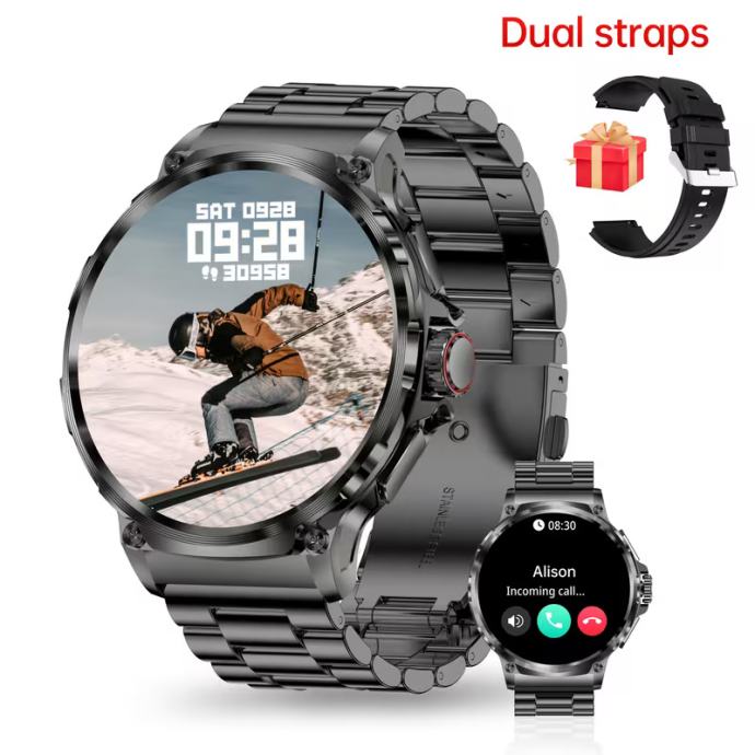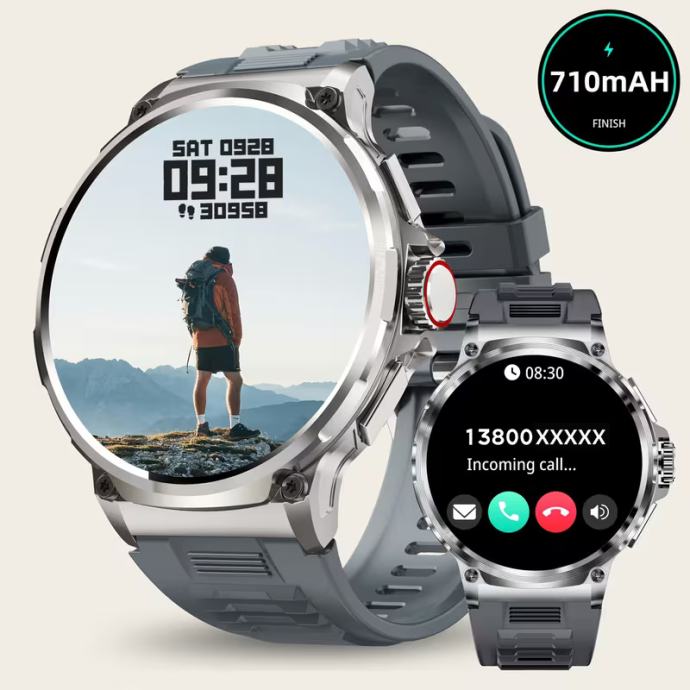 Muški sportski pametni sat Tizoop ima veliki okrugli HD zaslon od 4,7 cm, masivnu bateriju od 710 mAh za dulje stanje pripravnosti i dizajniran je za vanjsku izdržljivost. Podržava bežične pozive, obavijesti o porukama, preko 100 sportskih načina rada, pedometar, upravljanje glazbom i prilagodljive brojčanike sata, što ga čini kompatibilnim s iPhone i Android telefonima. Savršen je poklon za muškarce.
