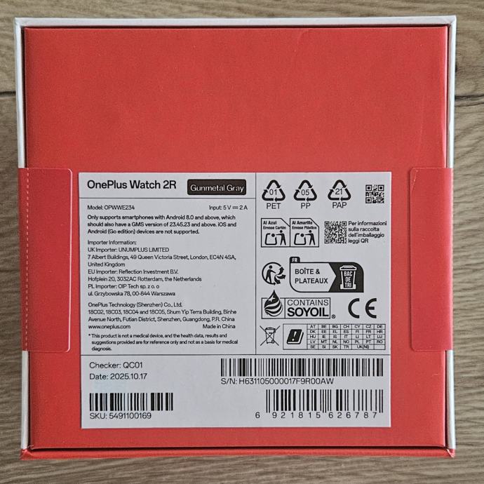Novi, zapakiran pametni sat (netaknute sigurnosne naljepnice) OnePlus Watch 2R, kupljen direktno s OnePlus stranice u paketu s drugim uređajem.